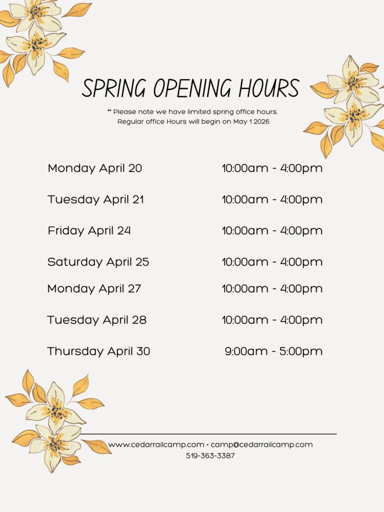 Our in-person office will be operating on limited hours starting April 20th, and we will officially resume our full-time summer hours on May 1st. Please see below for our April office hours.